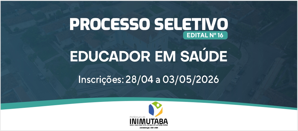 PROCESSO SELETIVO SIMPLIFICADO PARA CONTRATAÇÃO DE EDUCADOR EM SAÚDE – EDITAL Nº 16/2026 28/04/2026 12:52 PM Leia mais »