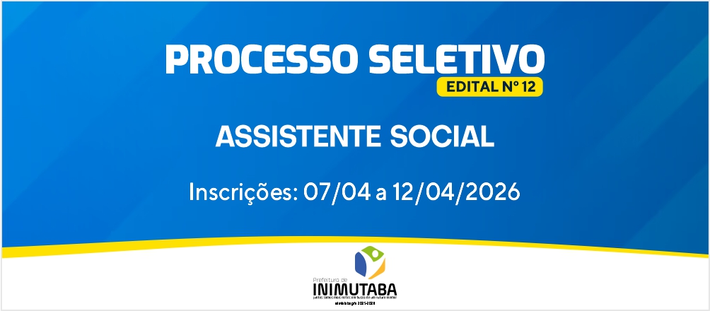 PROCESSO SELETIVO SIMPLIFICADO PARA CONTRATAÇÃO DE ASSISTENTE SOCIAL – EDITAL Nº 12/2026 07/04/2026 3:39 PM Leia mais »