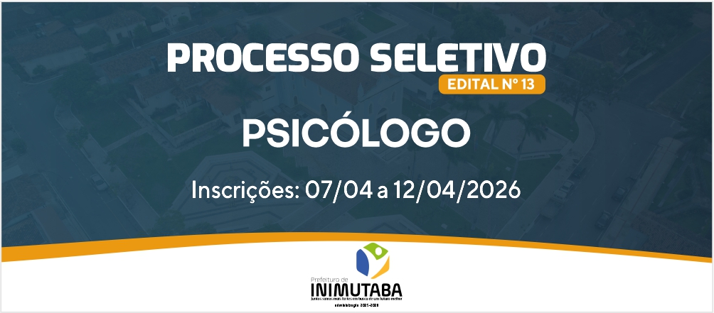 PROCESSO SELETIVO SIMPLIFICADO PARA CONTRATAÇÃO DE PSICÓLOGO – EDITAL Nº 13/2026 07/04/2026 3:45 PM Leia mais »