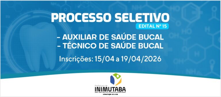 O Prefeito do Município de Inimutaba, no uso de suas atribuições legais, com fundamento no inciso IX, do art. 37 da Constituição Federal e na Lei Municipal nº 767, de 2 de julho de 2021, torna pública a abertura de inscrições para o Processo Seletivo Simplificado destinado à contratação temporária e formação de cadastro de reserva para os cargos de AUXILIAR DE SAÚDE BUCAL E TÉCNICO DE SAÚDE BUCAL, conforme condições estabelecidas neste Edital e seus anexos.