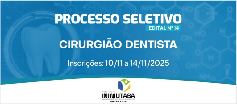 O Prefeito do Município de Inimutaba, no exercício de suas atribuições e tendo em vista a necessidade de contratação pessoal, torna pública a abertura das inscrições e estabelece regras relativas à realização de Processo Seletivo Simplificado para o cargo de CIRURGIÃO DENTISTA, para a contratação de pessoal temporário e formação de cadastro de reserva, conforme especificação contida no Anexo I.
